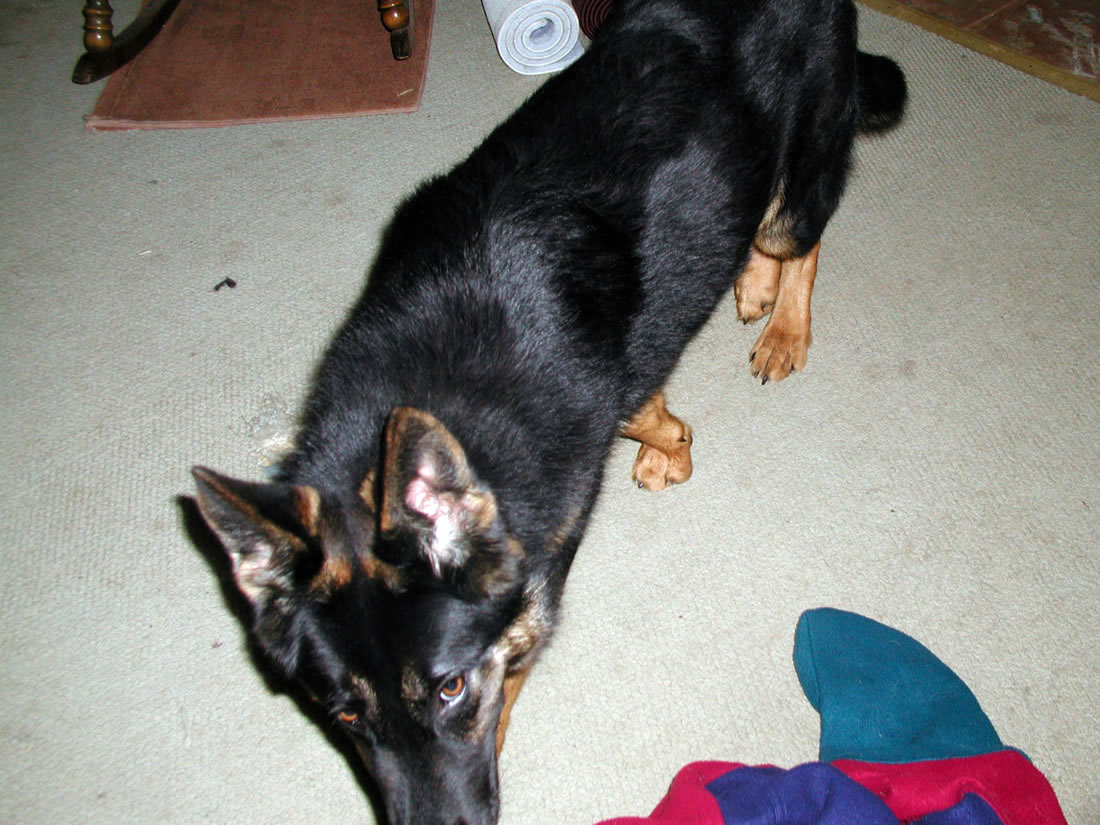 Great great grandfather, Ares Gymor, 33rd place at WUSV world championship in Belgium, 1990. Points 92 92 96 total 280. Grandfather, Basko del Cerbero, SG 272 at the Bundesiegerpufug in Ludwigshaqfen, Germany, 1997.